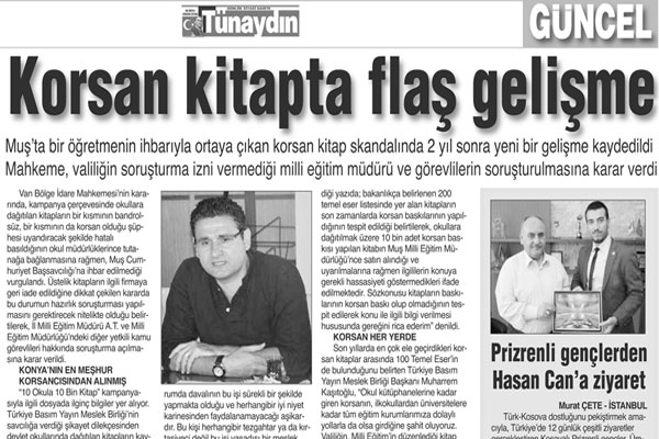 “10 Okula 10 Bin Kitap” kampanyasıyla ilgili dosyada ilginç bilgiler yer alıyor. Türkiye Basım Yayın Meslek Birliği’nin savcılığa verdiği şikayet dilekçesinden devlet okullarında dağıtılan kitapların kaynağının Konya’daki meşhur bir korsancı olduğu anlaşılıyor.