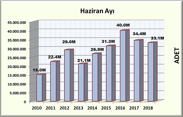 Bu yılın ilk altı ayında gerçekleşen bandrol talebi 172.070.355 adet olurken geçen yılın ilk yarısındaki talep 183.119.833 adet olarak gerçekleşmişti.
