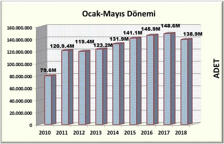 Bu yılın ilk beş ayında gerçekleşen bandrol talebi 138.931.672 adet oldu. Geçen yılın ilk beş ayındaki talep 148.664.928 adet olarak gerçekleşmişti.