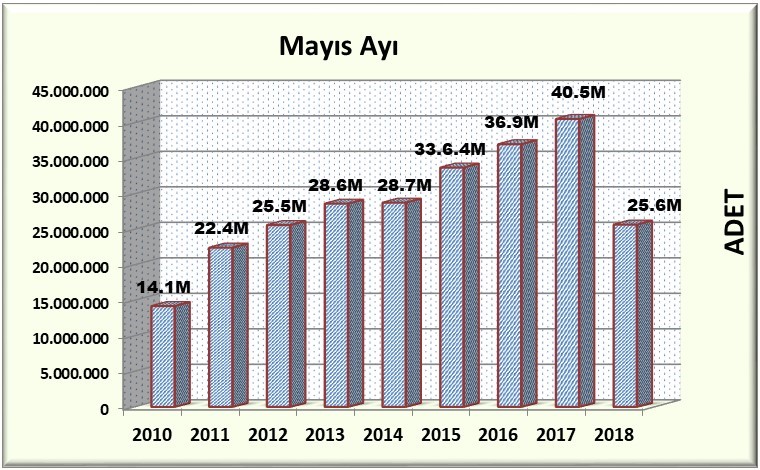 YAYFED verilerine göre 2018 Mayıs ayında yayıncılar tarafından yapılan bandrol talebi 25.659.786 adet olarak gerçekleşti. 2017 Mayıs ayında gerçekleşmiş olan talep 40.545.013 adet ile faaliyet dönemi süresince mayıs ayında ulaşmış olduğumuz en yüksek adet oldu.