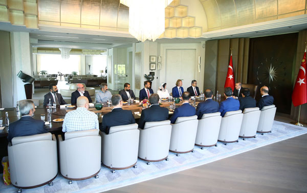 Cumhurbaşkanı Recep Tayyip Erdoğan’ın TBYM Başkanı Alpaslan Durmuş, YAYFED Başkanı Hasan Hüseyin Doğru, DEKMEB Başkanı Murat Köse, BYB Başkanı Münir Üstün’ü kabul ettiği Sarıyer Huber Köşkü’nde 15 Temmuz’da yaşanan FETÖ/PDY darbe girişimi de gündeme getirildi.