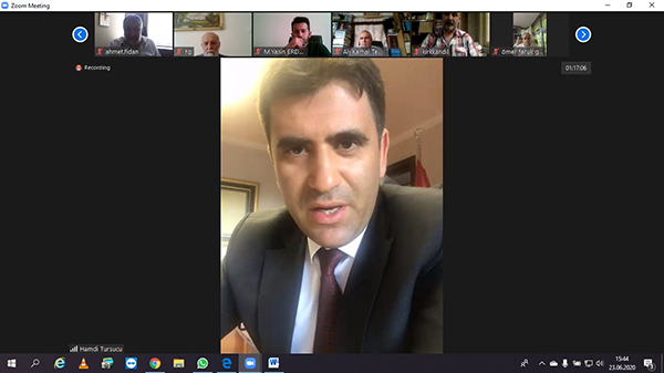 TBYM Yönetim Kurulu Üyesi Dr. Muhammed Ağırakça moderatörlüğünde gerçekleştirilen Çalıştayın 2. Oturumuna online bağlanarak kısa bir konuşma yapan Kütüphaneler ve Yayımlar Genel Müdür Hamdi Turşucu, “bize düşen ne varsa yapacağız” diyerek yayıncıların yanında olduğunu söyledi.