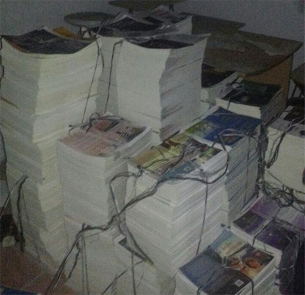 Operasyon kapsamında 01 Şubat pazar akşamı yapılan baskında 60 bin adet kitap forması, 2 bin adet kapak, 5 adet metal kalıp, 2 adet matbaa makinesi, 1 adet kapak takma makinesi, 1 adet kırma makinesi, 1 adet tozlama makinesi, 1 adet ofset basma makinesi, 1 adet kalıp yıkama makinesi ele geçirildi.