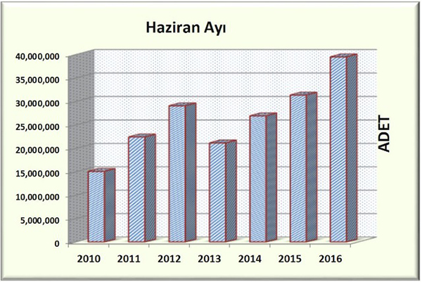 Haziran ayı ile birlikte 2016 yılının ilk yarısını tamamlamış olduk. Bu bağlamda 2016’nın ilk altı ayında yayıncılar toplam 185.977.607 adet kitap yayımladı. Geçen yılın aynı döneminde bu rakam 172.491.929 adet olarak gerçekleşmişti. Ülkemizde ve dünyada yaşanmakta olan bütün küresel sorunlara rağmen 2016’nın bu döneminde bandrol talebi önceki yılın aynı dönemine göre %8 artış göstermiştir. 2015 yılının tarihi bir rekor adetle tamamlandığını dikkate alırsak 2016 yılında bu adeta ulaşılmış olması yayımcılık sektörü açısından büyük bir başarıdır. Bu yıla başlarken sektöre olan güvenimizle, sektörün büyüme yönündeki ivmesinin devam edeceği beklentimizi paylaşmıştık. Haziran sonu itibariyle ortaya çıkan rakamlar bu yöndeki öngörülerimizi karşılayacak şekilde bir sonuç ortaya çıkmıştır.