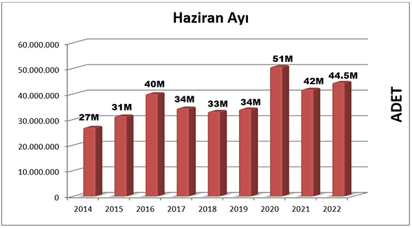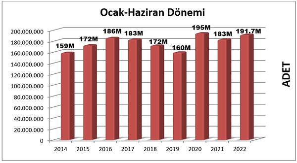 2021 yılının ilk yarısında yayımlanan toplam kitap sayısı 183.021.996 adet olarak gerçekleşmişti. Bu yılın ilk altı ayında ise yayımlanan kitap sayısı 191.754.079 adettir. Bu da yılın ilk yarısında geçtiğimiz yıla göre yaklaşık %4,8 oranında bir büyüme olduğunu göstermektedir.