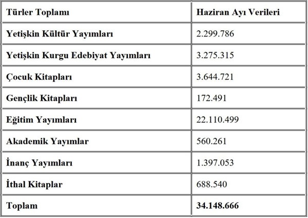 Kurucu üyesi olduğumuz Yayımcı Meslek Birlikleri Federasyonu (YAYFED) verilerine göre; Haziran ayında yayımcılarımız 34.148.666 adet kitap üretimi gerçekleştirdi. 2024 yılının aynı ayındaki bu rakam 34.146.859 olarak kayıtlara geçmişti.