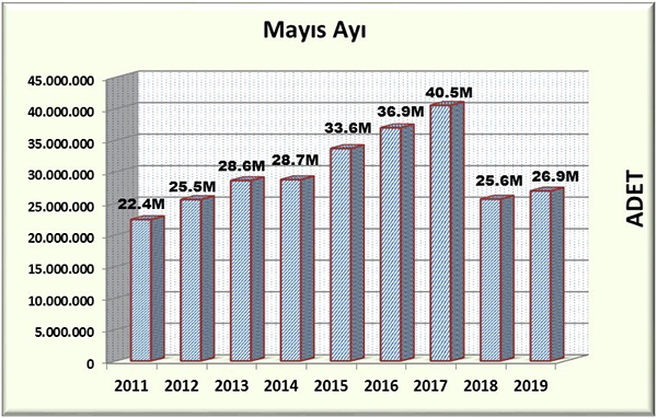 Kurucu üyesi olduğumuz Yayımcı Meslek Birlikleri Federasyonu (YAYFED) verilerine göre 2019 Mayıs ayında yayıncılar tarafından yapılan bandrol talebi 26.957.340 adet olarak açıklandı.