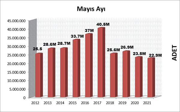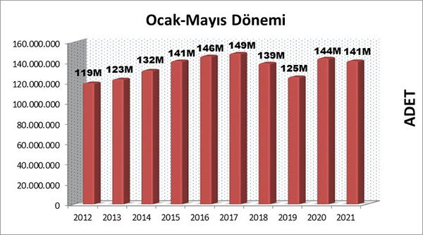 Mayıs ayı ile yılın ilk beş ayını tamamlamış olduk. 2020 yılının ilk beş ayında yayımlanan toplam kitap sayısı 143.844.367 adet olarak gerçekleşmişti. Bu yılın aynı döneminde ise yayımlanan kitap sayısı 141.223.179 adettir. Bu rakamlara göre yılın ilk beş ayında, geçen yılın aynı dönemine oranla kitap üretiminde yaklaşık %1.8 oranında bir küçülme gerçekleşmiştir.