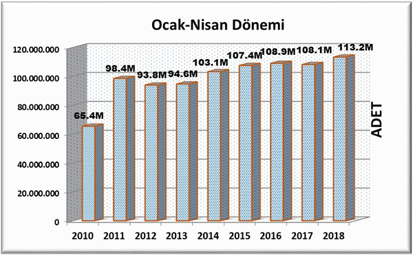 Böylelikle 2018 yılının ilk dört ayında gerçekleşen bandrol talebi 113.271.886 adet olarak belirtilirken 2017 yılının ilk dört ayındaki talep 108.119.915 adet olarak gerçekleşmişti. İlk dört ay karşılaştırıldığında yaklaşık %4 oranında bir büyümenin gerçekleşmiş olduğunu gözlenmektedir.