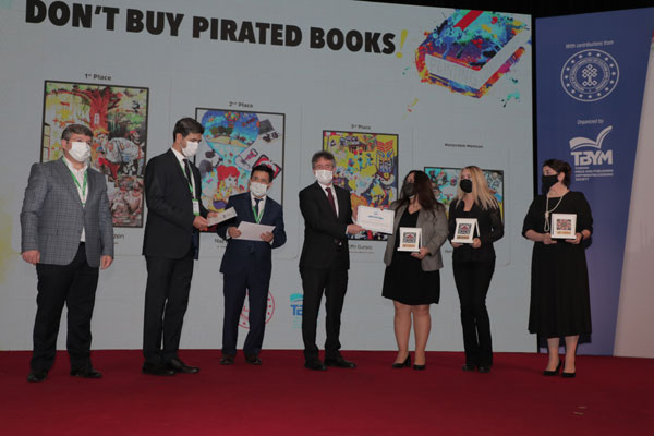 Ortaokullar arasında düzenlenen yarışmanın seçici kurul üyeleri TBYM Yönetim Kurulu Üyesi Yusuf Ünal, Filiz Kara Bilgin, İpek Betni ve Gülsevil Unan'a da “Korsan Kitaba Hayır Resim Yarışması”na katkılarından dolayı teşekkür plaketi verildi.