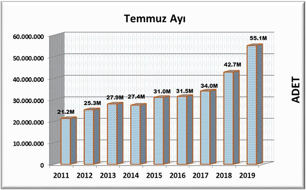 YAYFED verilerine göre; yayıncılık sektörü 2019 Temmuz ayında üretilen kitap sayısında tüm zamanların rekoruna imza atarak bandrol talebi 55.121.271 adet olarak gerçekleşmiştir.. 2019 Temmuz ayındaki bandrol talebi ile önceki yılın aynı ayına göre %29 oranında büyüme kaydetmiştir. Yayıncılık sektöründe haziran ve ekim ayları arasındaki dönemde eğitim kategorisindeki kitap üretimi daha baskın rol almaktadır. Temmuz ayında yaşanan diğer sevindirici gelişme ise bu rekora ulaşılmasında kültür yayınları kategorisinde bu aya yönelik kitap üretiminin ciddi artışın etkili olmasıdır.